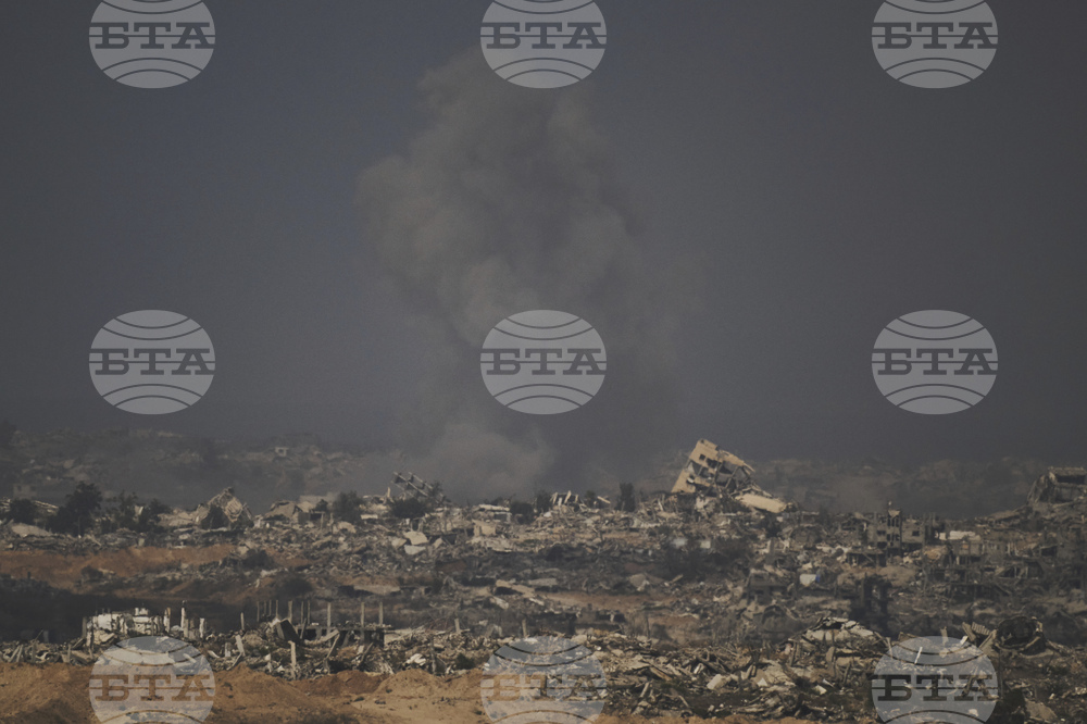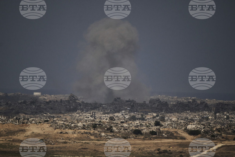 Smoke rises following an Israeli military strike in the Gaza Strip, as seen from southern Israel, Tuesday, Sept. 16, 2025. (AP Photo/Leo Correa)