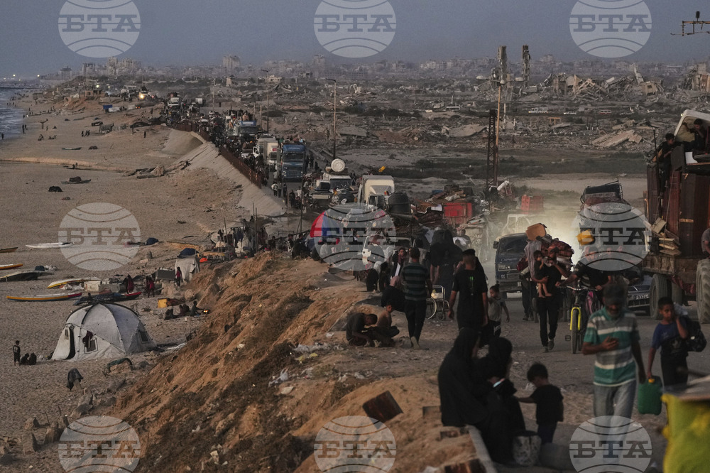 Displaced Palestinians flee northern Gaza along the coastal road toward the south, after Israel's military says its expanded operation in Gaza City has begun and warns residents to leave, Tuesday, Sept. 16, 2025. (AP Photo/Abdel Kareem Hana)