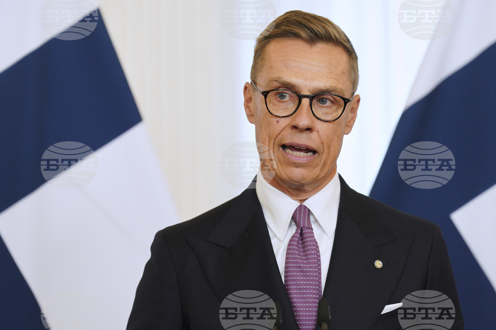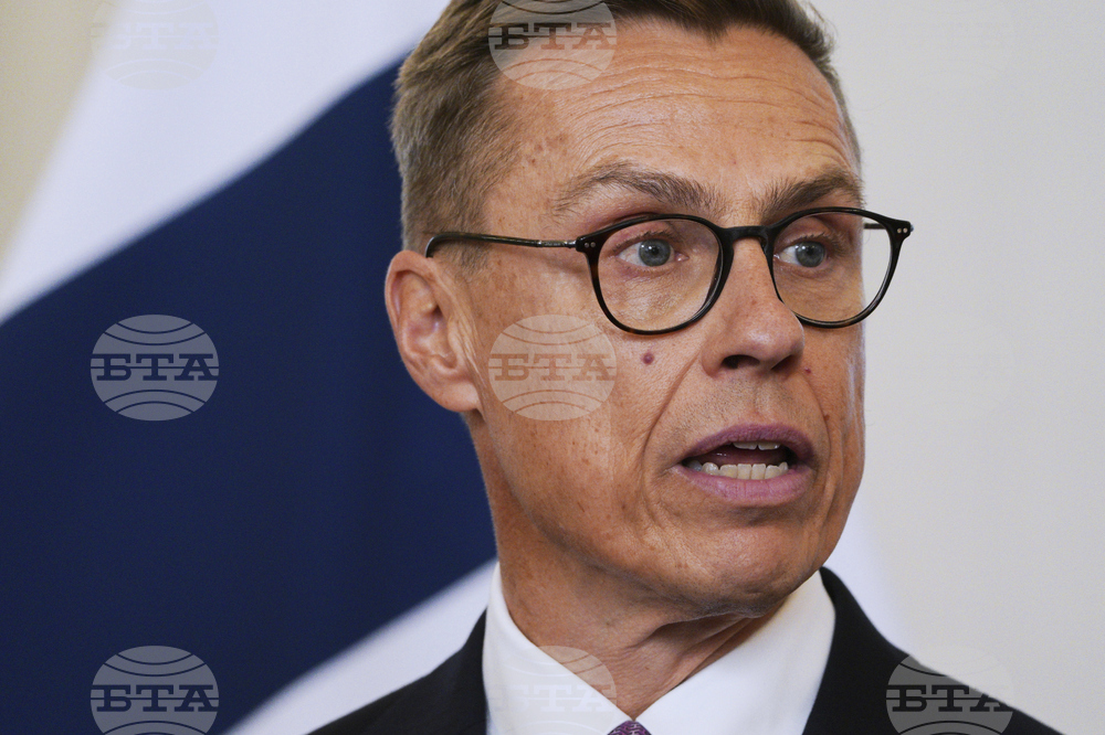 Finland's President Alexander Stubb speaks to the media during a joint news conference with Latvia's President Edgars Rinkevics following their talks at the Riga Castle in Riga, Latvia, Tuesday, Sept. 16, 2025. (AP Photo/Roman Koksarov)