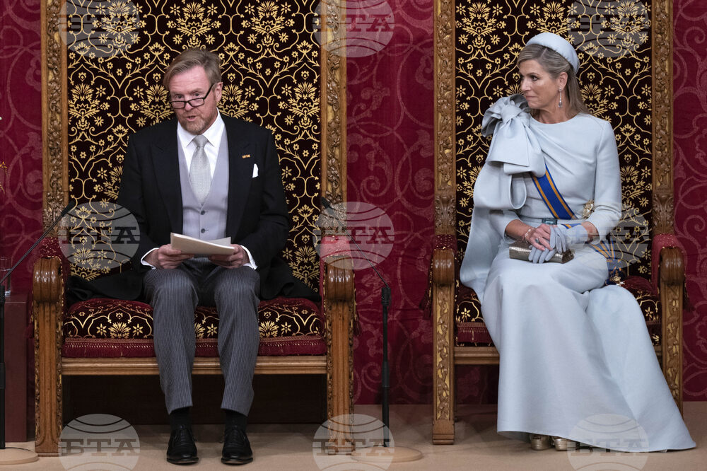FILE - Dutch King Willem-Alexander, seated next to Queen Maxima, outlines the new government's policy plans and budget for the coming year in The Hague, Netherlands, on Sept. 17, 2024. (AP Photo/Peter Dejong, File)