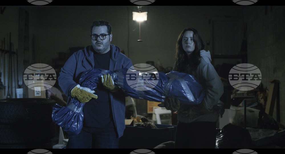 This image released by Republic Pictures shows Josh Gad, left, and Kaya Scodelario in a scene from "Adulthood." (Albert Camicioli/Republic Pictures via AP)