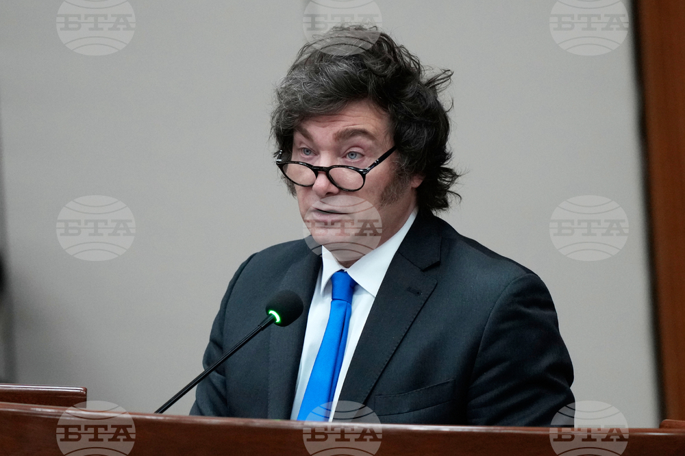 Argentina's President Javier Milei addresses a special session at Congress in Asunción, Paraguay, Wednesday, Sep. 17, 2025. (AP Photo/Jorge Saenz)