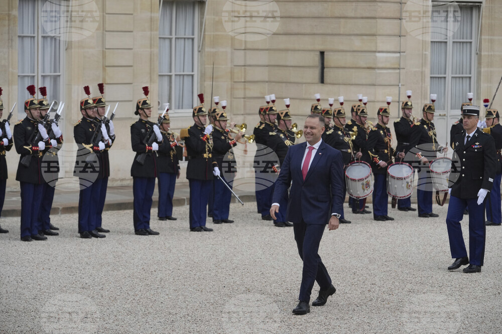 Poland's President Karol Nawrocki arrives to meet French President Emmanuel Macron at the Elysee Palace, in Paris, France, Tuesday, Sept. 16, 2025. (AP Photo/Thibault Camus)
