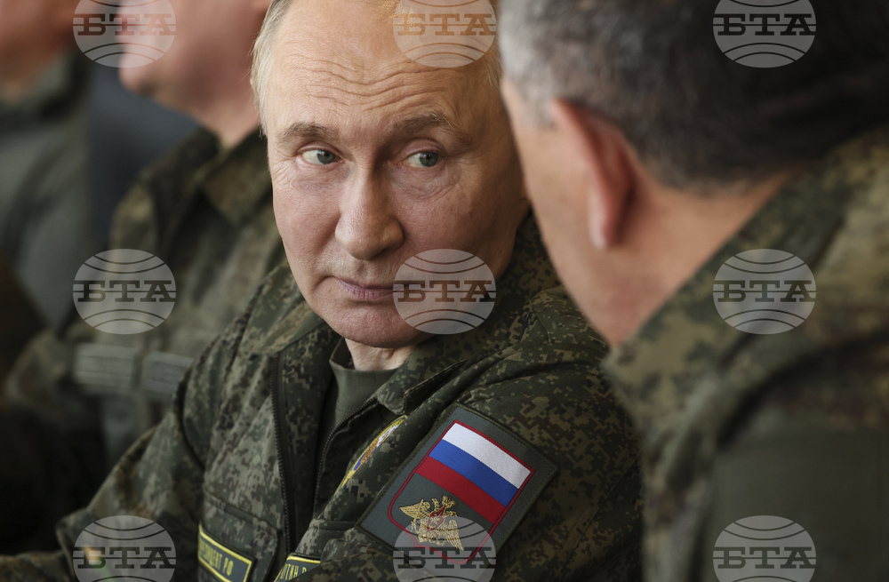 Russian President Vladimir Putin, left, speaks with Deputy Defence Minister Yunus-Bek Yevkurov during the Russian-Belarusian joint military drills "Zapad 2025" (West 2025) at a command post at the Mulino training ground in Nizhny Novgorod region, Russia, Tuesday, Sept. 16, 2025. (Valery Sharifulin/Sputnik, Kremlin Pool Photo via AP)