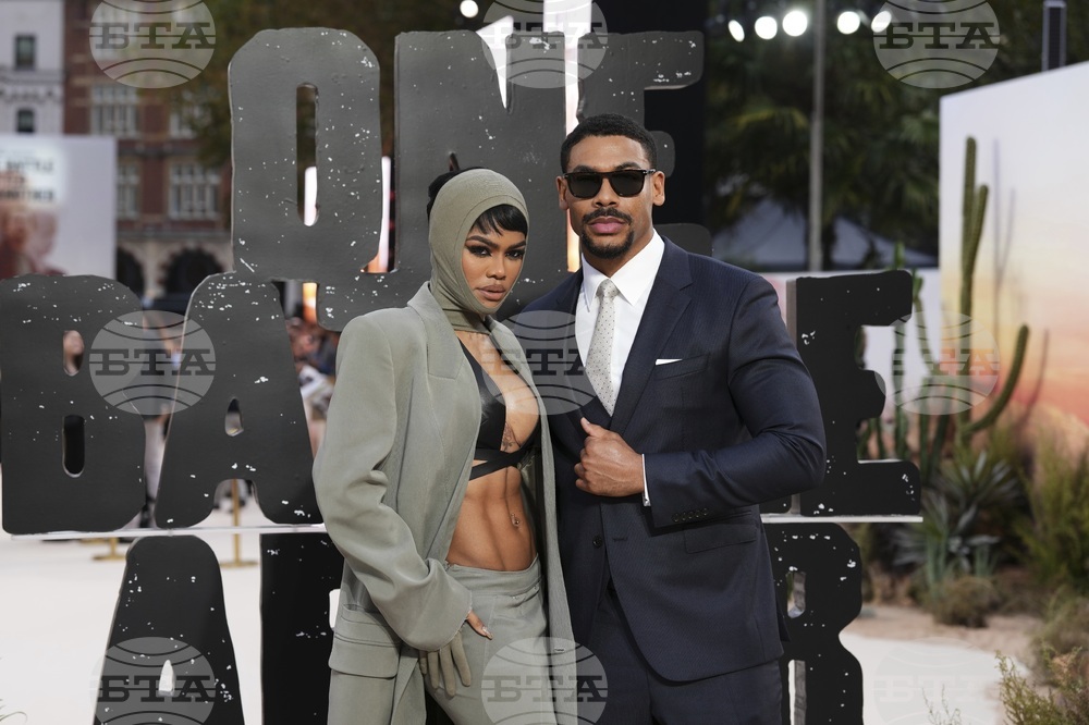 Teyana Taylor, left, and Aaron Pierre pose for photographers upon arrival at the premiere of the film 'One Battle After Another' on Tuesday, Sept. 16, 2025, in London. (Photo by Scott A Garfitt/Invision/AP)