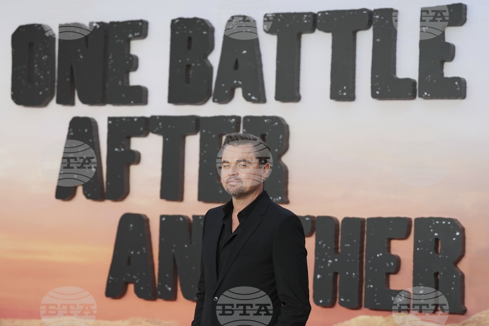 Leonardo DiCaprio poses for photographers upon arrival at the premiere of the film 'One Battle After Another' on Tuesday, Sept. 16, 2025, in London. (Photo by Scott A Garfitt/Invision/AP)