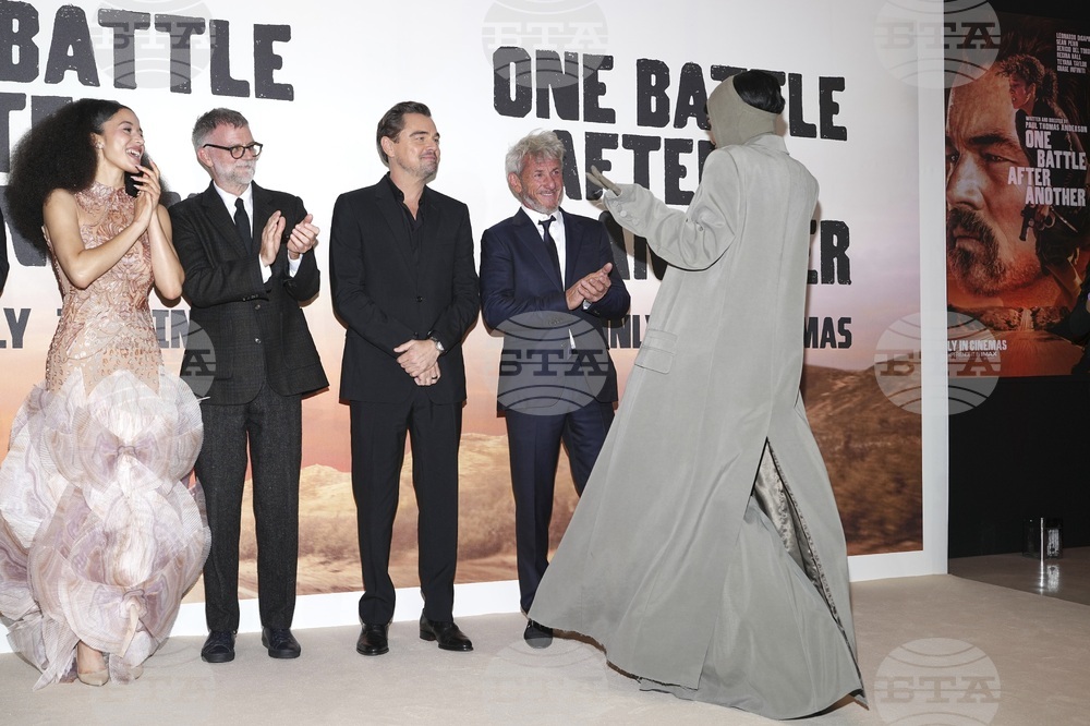 Benicio Del Toro, from left, Chase Infiniti, Leonardo DiCaprio, Teyana Taylor and Sean Penn pose for photographers upon arrival at the premiere of the film 'One Battle After Another' on Tuesday, Sept. 16, 2025, in London. (Photo by Scott A Garfitt/Invision/AP)