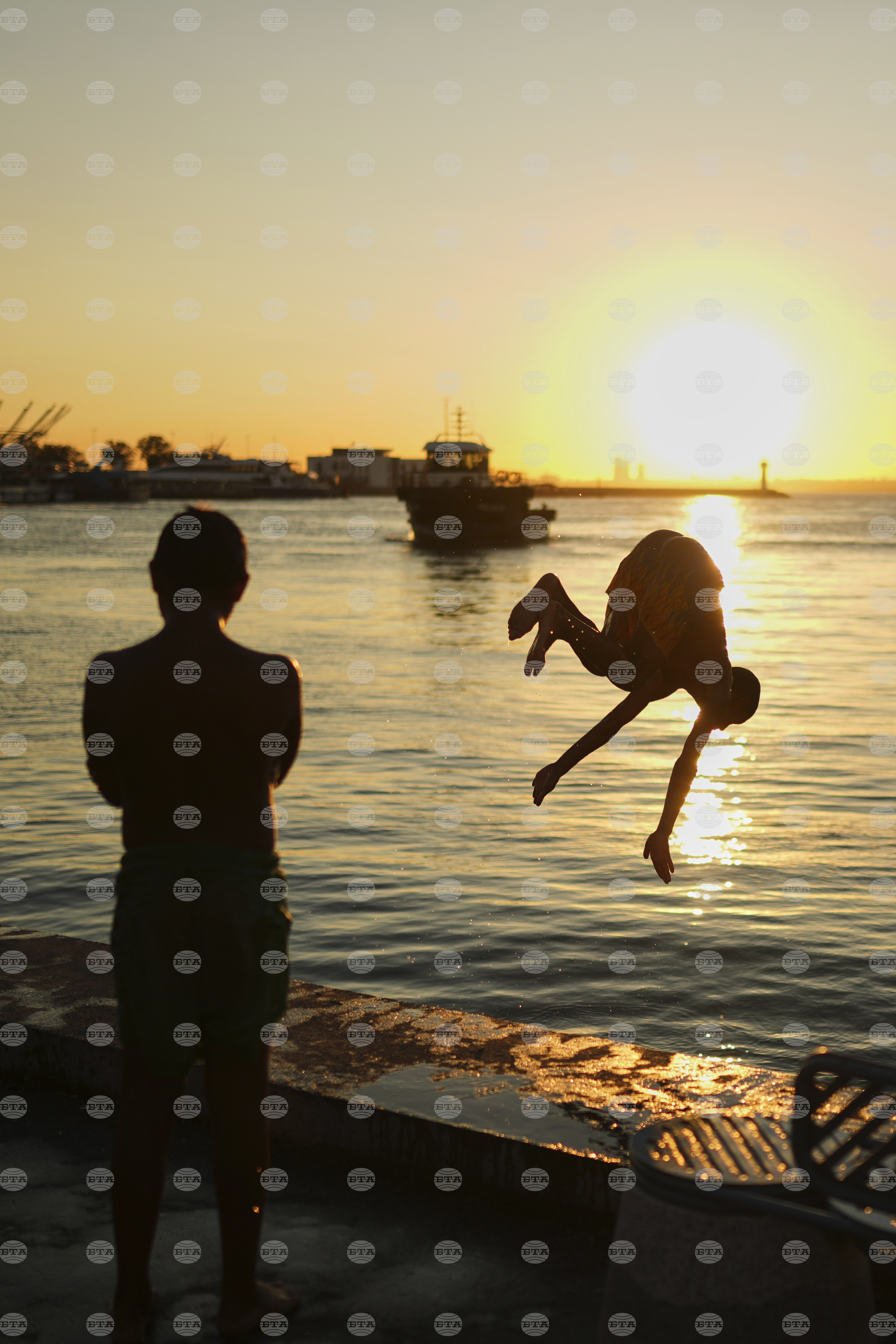 Youngsters dive for fun into the Bosphorus at Kadikoy sea promenade, in Istanbul, Turkey, Tuesday, Sept. 16, 2025. (AP Photo/Francisco Seco)