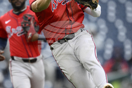 Atlanta Braves shortstop Ha-Seong Kim (9) throws to first to put out Washington Nationals' Jacob Young during the seventh inning of the first baseball game of a doubleheader, Tuesday, Sept. 16, 2025, in Washington. (AP Photo/Nick Wass)