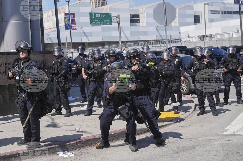 FILE - Police defend the Metropolitan Detention Center in downtown Los Angeles, June 8, 2025, following an immigration raid protest the previous day.(AP Photo/Jae Hong, File)