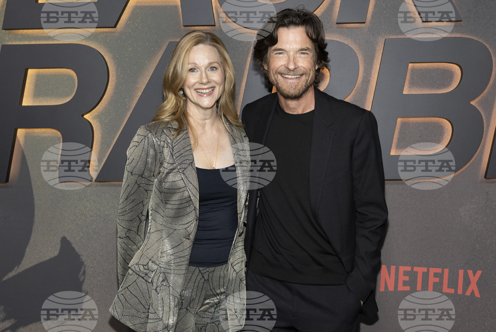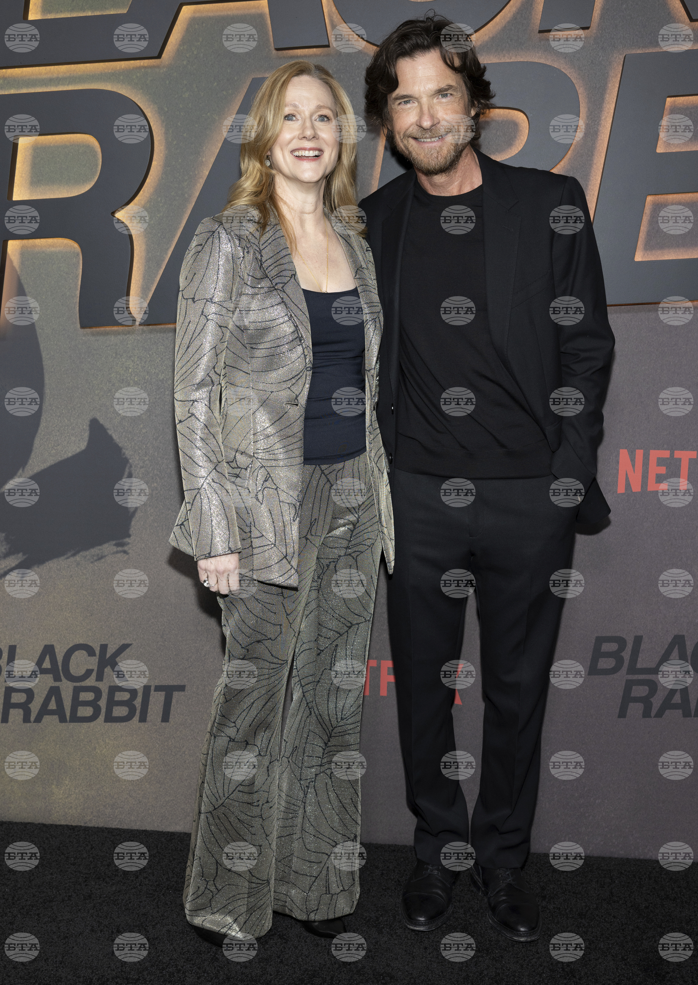 Laura Linney, left, and Jason Bateman attend the "Black Rabbit" Netflix premiere at SVA Theatre on Tuesday, Sept. 16, 2025, in New York. (Photo by CJ Rivera/Invision/AP)