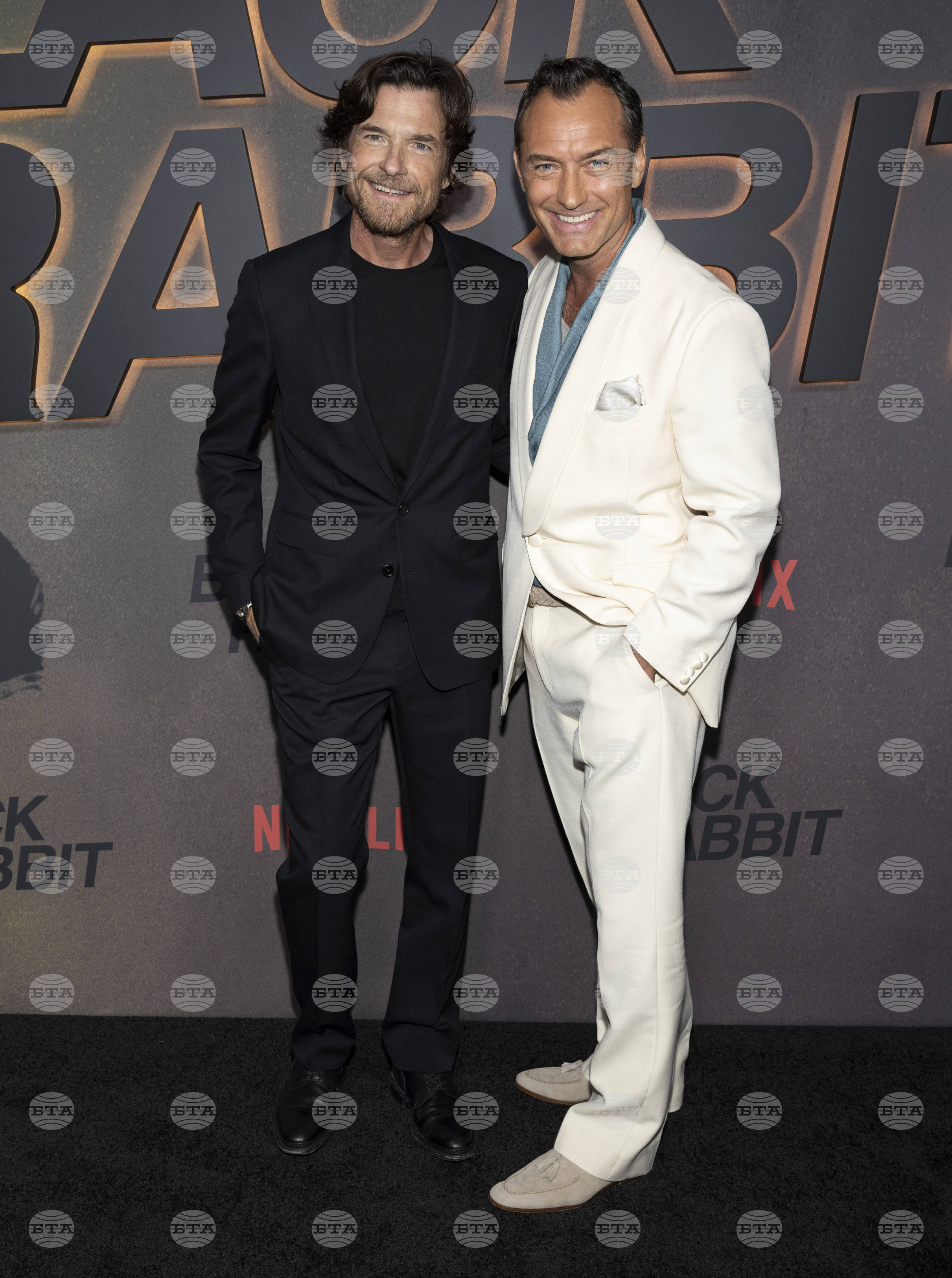 Jason Bateman, left, and Jude Law attend the "Black Rabbit" Netflix premiere at SVA Theatre on Tuesday, Sept. 16, 2025, in New York. (Photo by CJ Rivera/Invision/AP)