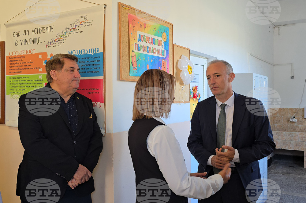 Сливен (17 септември 2025) Вчера министърът на образованието и науката Красимир Вълчев бе на посещение в ОУ „Свети свети Кирил и Методий". Присъства директорът на училището Силвия Забунова (вляво).