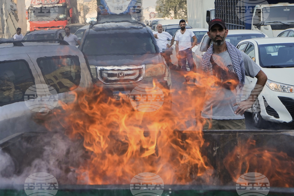 Retired members of the Lebanese security forces block a highway during a protest demanding salary and pension raises, which have been decimated by the economic meltdown, in Beirut, Lebanon, Wednesday, Sept. 17, 2025. (AP Photo/Bilal Hussein)
