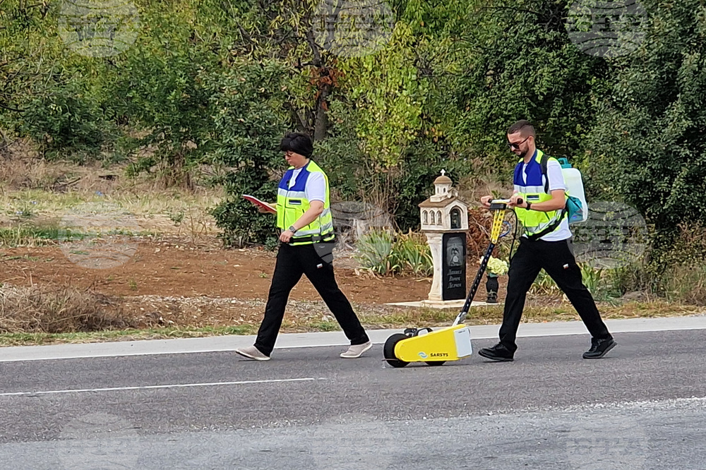 Село Крепост (17 септември) Експерти на сдружение „Европейски център за транспортни политики“ (ЕЦТП), съвместно с Агенция пътна инфраструктура и Държавна агенция безопасност на движението по пътищата, инспектираха кръстовище на разклона за с. Крепост, между Димитровград и Хасково. Поводът за проверката е получен сигнал от граждани за проблеми с безопасността на преминаване. Присъстват председателят на Управителния съвет в „Направление инфраструктура и пътна безопасност“ на Европейски център за транспортни политики Диана Русинова (вляво).