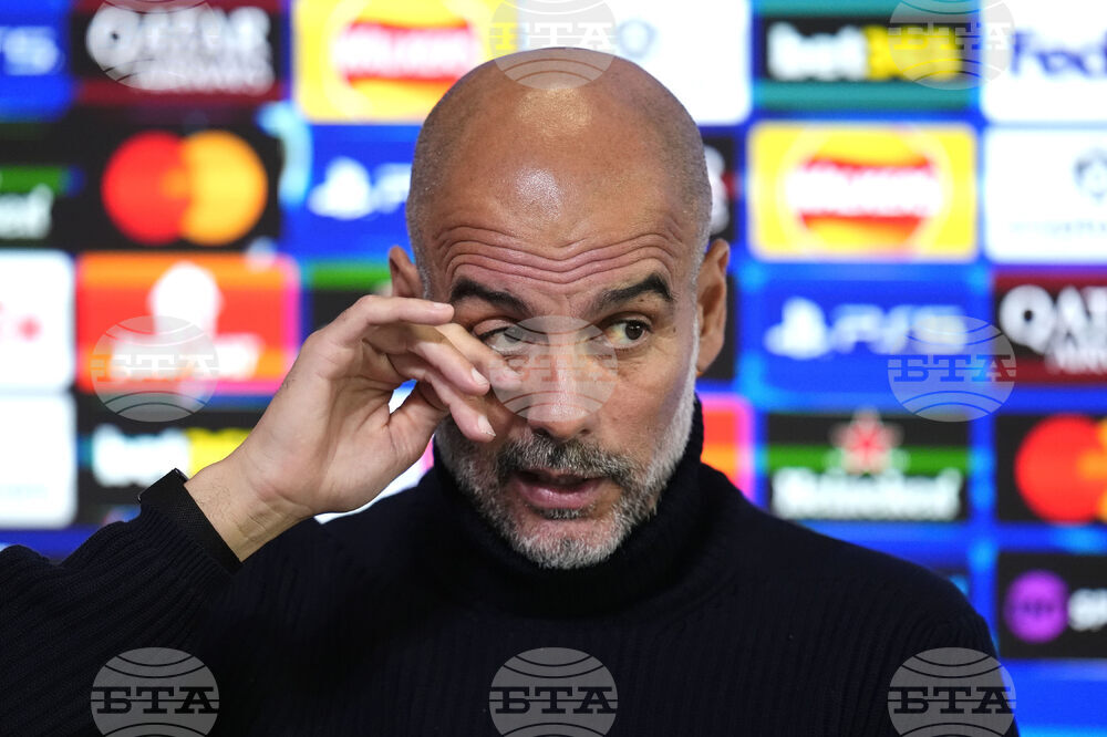 Manchester City manager Pep Guardiola during a press conference at the City Football Academy, Manchester, England, Wednesday Sept. 17, 2025. (Nick Potts/PA via AP)