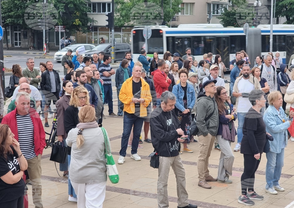 Варна (17 септември 2025) Пред сградата на Община Варна се провежда протест срещу задържането на кмета на Варна Благомир Коцев в ареста.