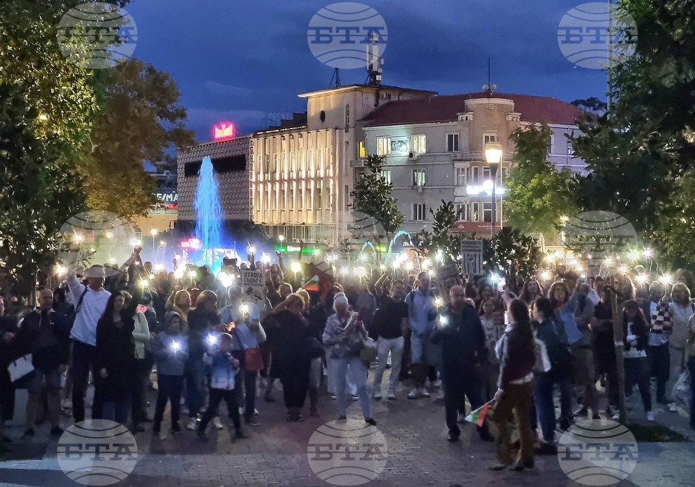 Варна (17 септември 2025) Пред сградата на Община Варна се провежда протест срещу задържането на кмета на Варна Благомир Коцев в ареста. Протестът премина в шествие до площад "Независимост", където демонстрантите осветяват сградата на Съдебната палата в знак на недоволство срещу завладяната съдебна система.
