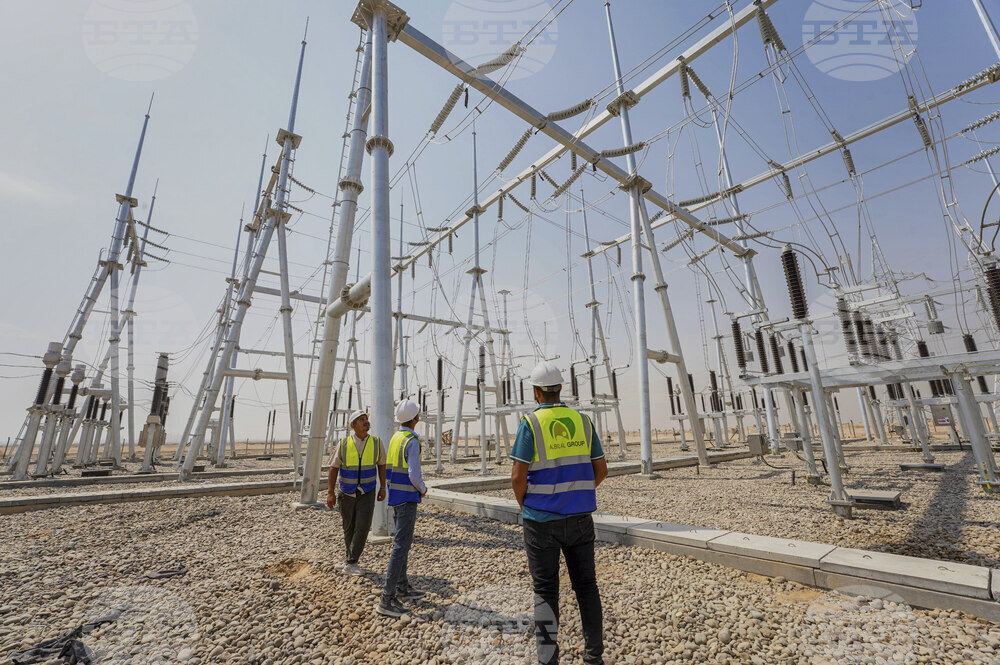 Workers install panels at a newly opened industrial-scale solar power plant in Karbala, Iraq, Wednesday, Sept. 17, 2025. (AP Photo/Anmar Khalil)