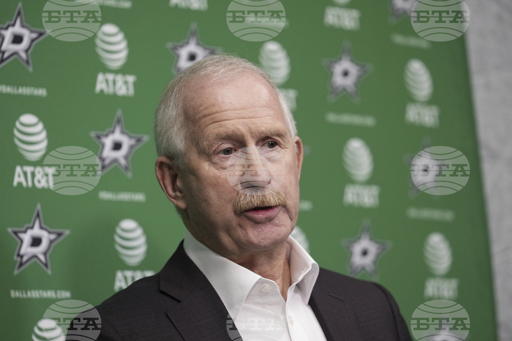 Dallas Stars general managr Jim Nill responds to questions during a news conference at the NHL hockey team's headquarters, Wednesday, Sept. 17, 2025, in Frisco, Texas. (AP Photo/Tony Gutierrez)