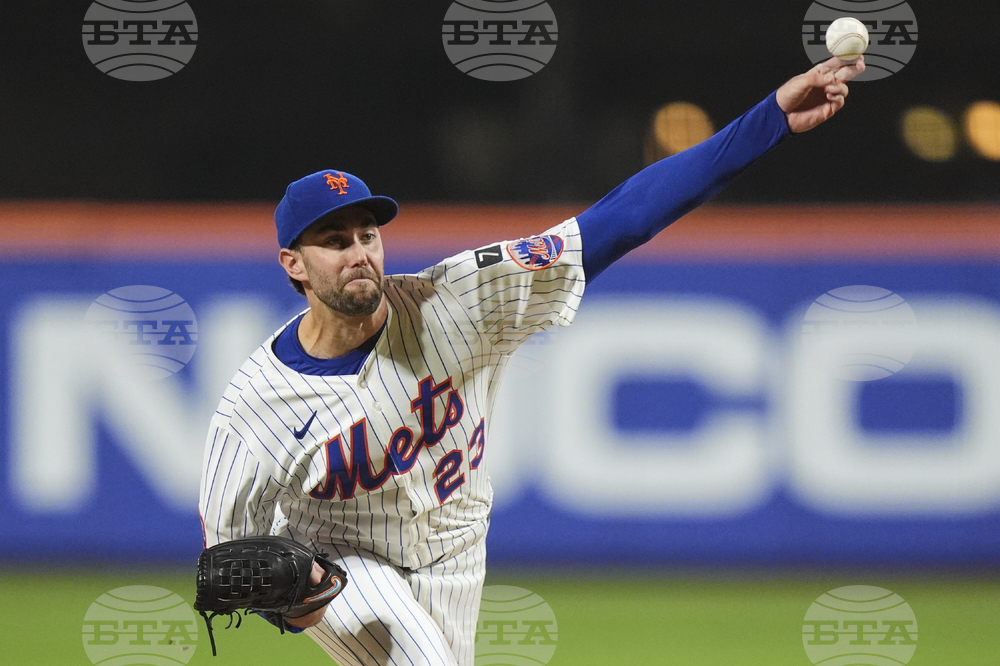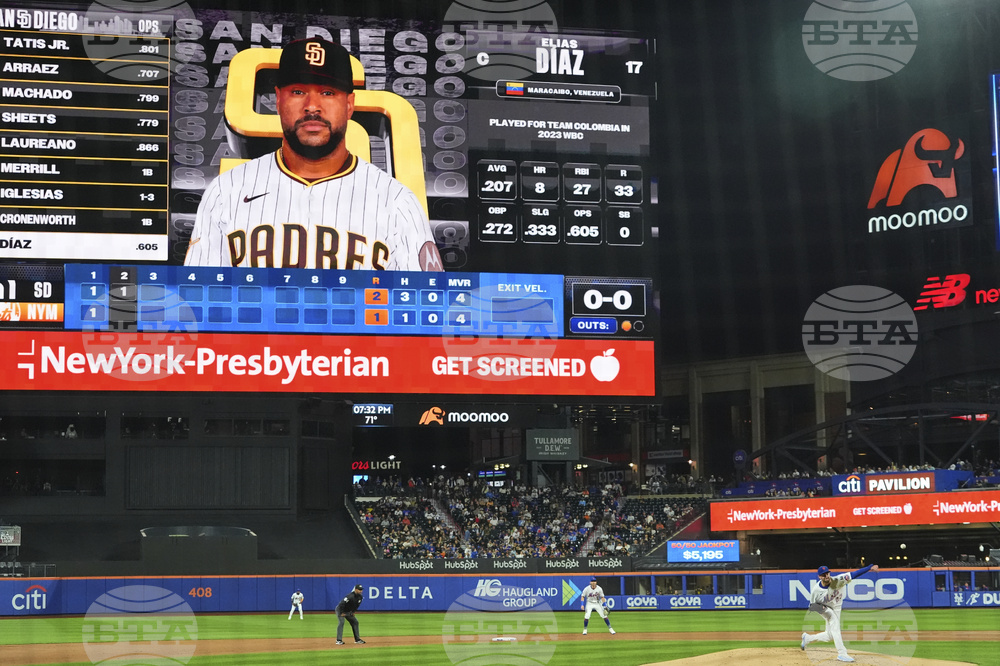 New York Mets' David Peterson pitches to San Diego Padres' Elias Díaz during the second inning of a baseball game Wednesday, Sept. 17, 2025, in New York. (AP Photo/Frank Franklin II)