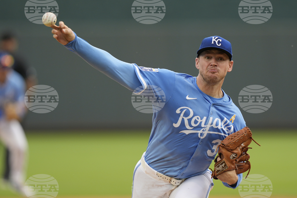 Kansas City Royals starting pitcher Stephen Kolek throws during the first inning of a baseball game against the Seattle Mariners, Thursday, Sept. 18, 2025, in Kansas City, Mo. (AP Photo/Charlie Riedel)