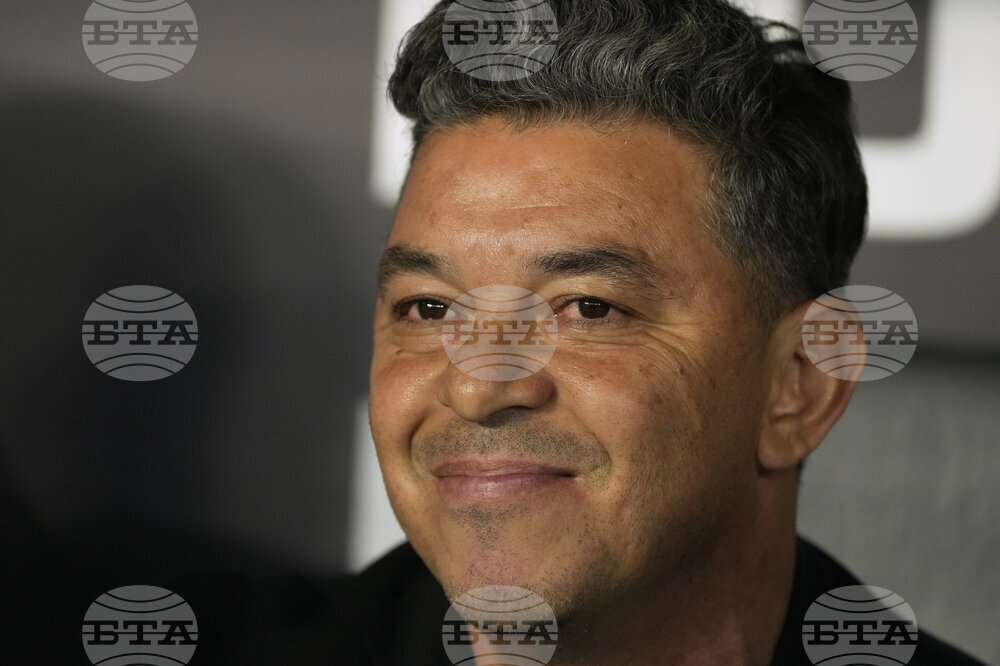 Coach Marcelo Gallardo of Argentina's River Plate smiles prior to a Copa Libertadores quarterfinal soccer match against Brazil's Palmeiras at the Monumental stadium in Buenos Aires, Argentina, Wednesday, Sept. 17, 2025. (AP Photo/Gustavo Garello)