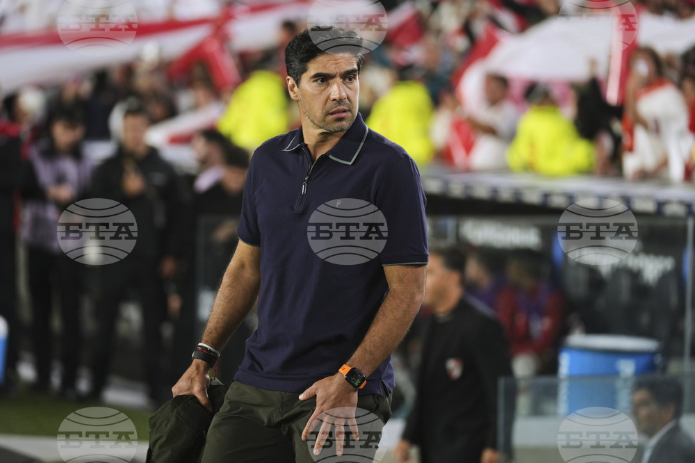 Coach Abel Ferreira of Brazil's Palmeiras attends a Copa Libertadores quarterfinal soccer match against Argentina's River Plate at the Monumental stadium in Buenos Aires, Argentina, Wednesday, Sept. 17, 2025. (AP Photo/Gustavo Garello)