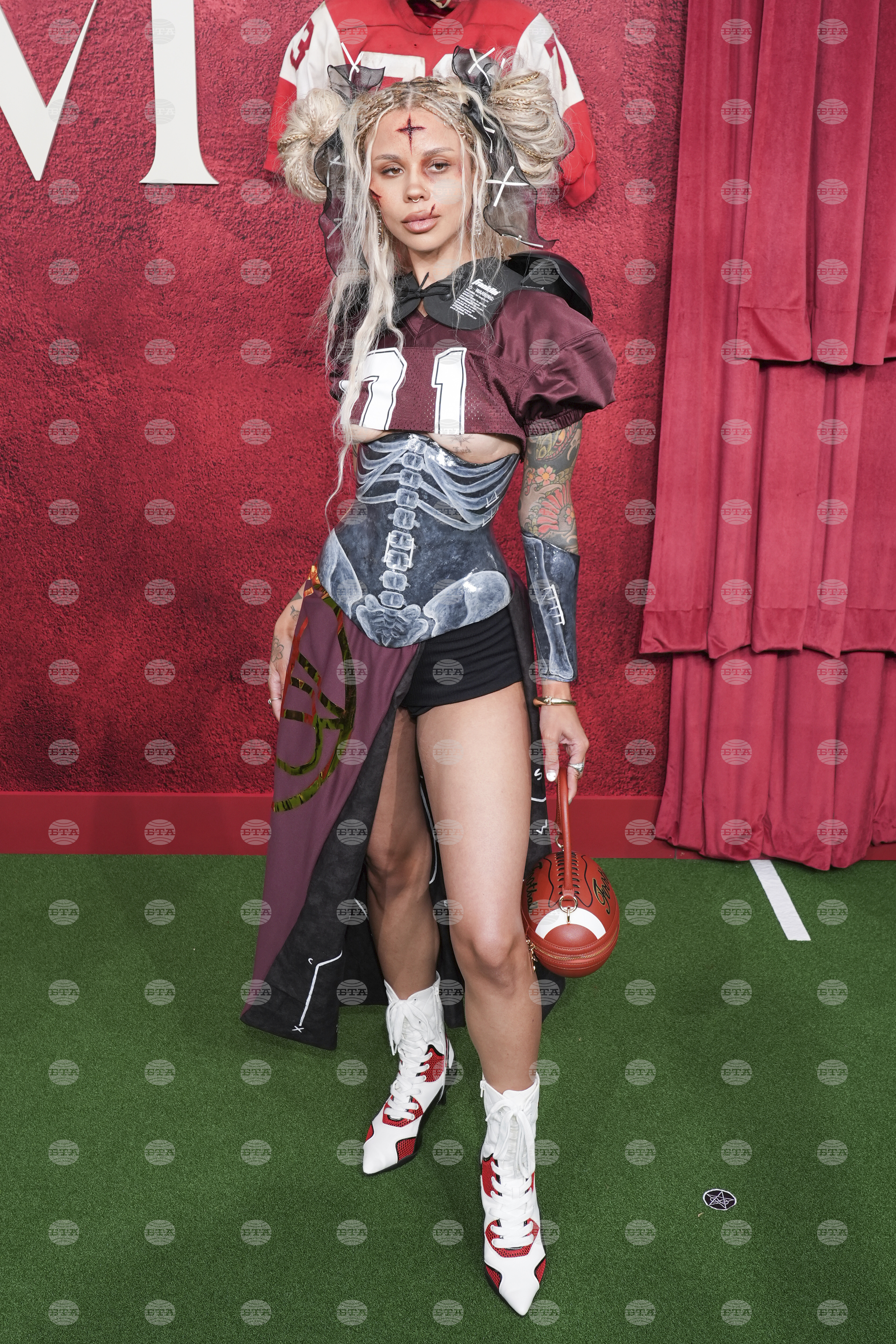 Julia Fox arrives at the premiere of "Him" on Wednesday, Sept. 17, 2025, at TCL Chinese Theatre in Los Angeles. (AP Photo/Chris Pizzello)