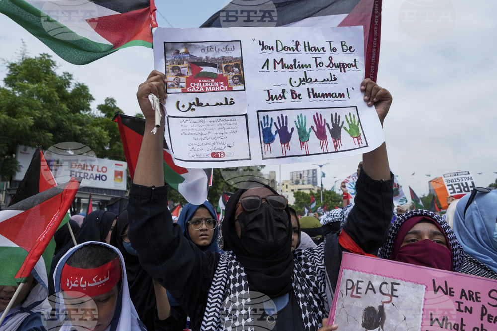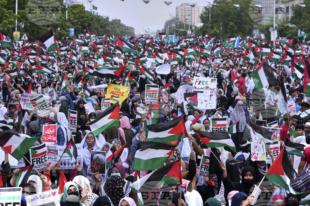 Supporters of the Pakistani religious group "Jamaat-e-Islami" take part in a rally in Karachi, Pakistan, against Israeli airstrikes and to show solidarity with Palestinian people living in Gaza, Thursday, Sept. 18, 2025. (AP Photo/Fareed Khan)