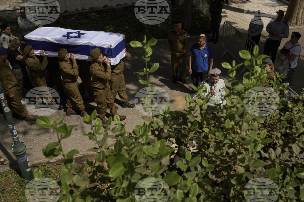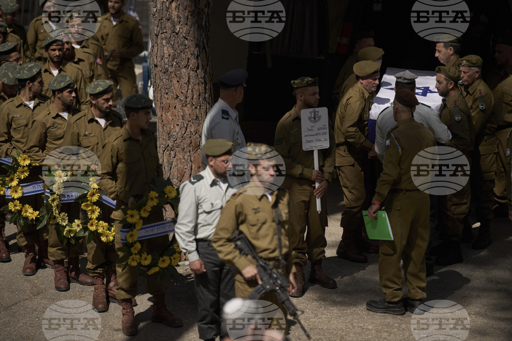 Israeli soldiers carry the coffin of Lieutenant Colonel Yitzhak Harush, who was killed in a shooting attack yesterday at the Allenby Bridge Crossing between the West Bank and Jordan, during his funeral at the Mount Herzl military cemetery in Jerusalem, Friday, Sept. 19, 2025. (AP Photo/Leo Correa)