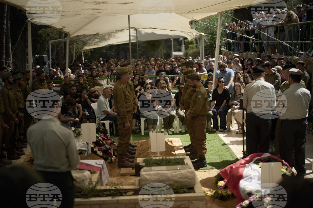 Relatives and friends gather around the grave of Lieutenant Colonel Yitzhak Haresh, who was killed in a shooting attack at the Allenby Bridge Crossing between the West Bank and Jordan, during his funeral at the Mount Herzl military cemetery in Jerusalem, Friday, Sept. 19, 2025. (AP Photo/Leo Correa)