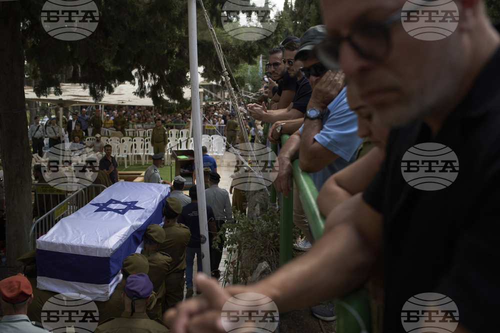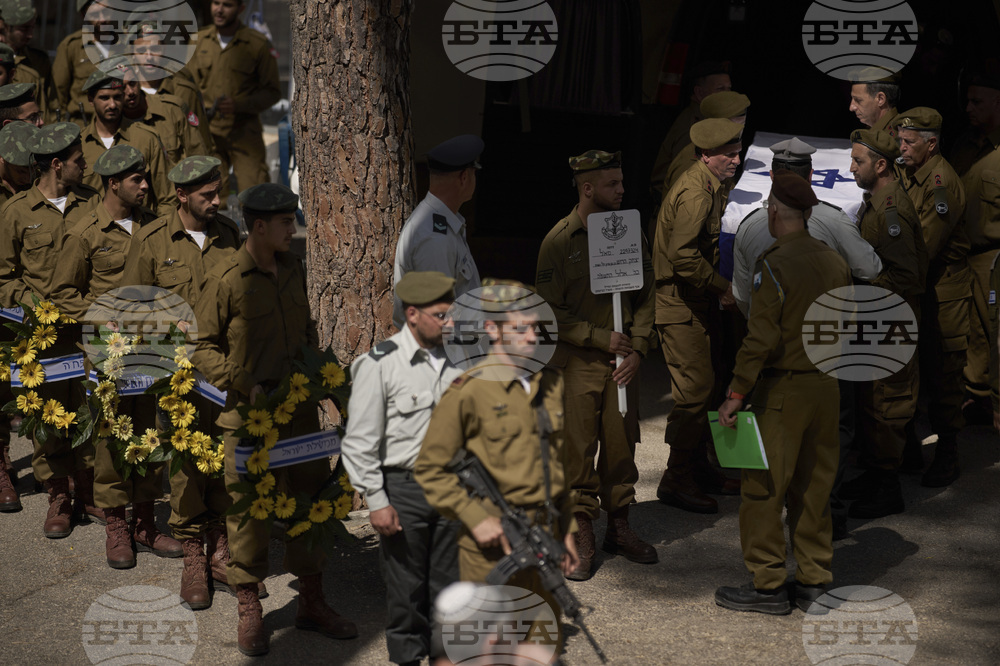 Israeli soldiers carry the coffin of Lieutenant Colonel Yitzhak Haresh, who was killed in a shooting attack yesterday at the Allenby Bridge Crossing between the West Bank and Jordan, during his funeral at the Mount Herzl military cemetery in Jerusalem, Friday, Sept. 19, 2025. (AP Photo/Leo Correa)
