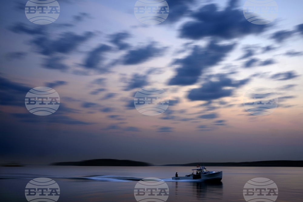 FILE - A lobster fishing boat motors out to sea under the dawn sky Aug. 14, 2024, on Casco Bay in South Portland, Maine. (AP Photo/Robert F. Bukaty, File)