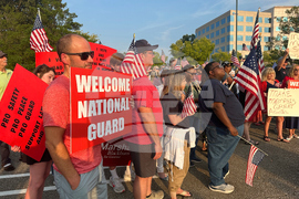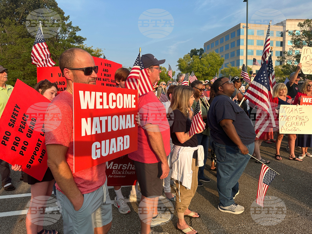 Supporters of the future arrival of the National Guard in Memphis attend a rally on Thursday, Sept. 18, 2025, in Memphis, Tenn. (AP Photo/Adrian Sainz)