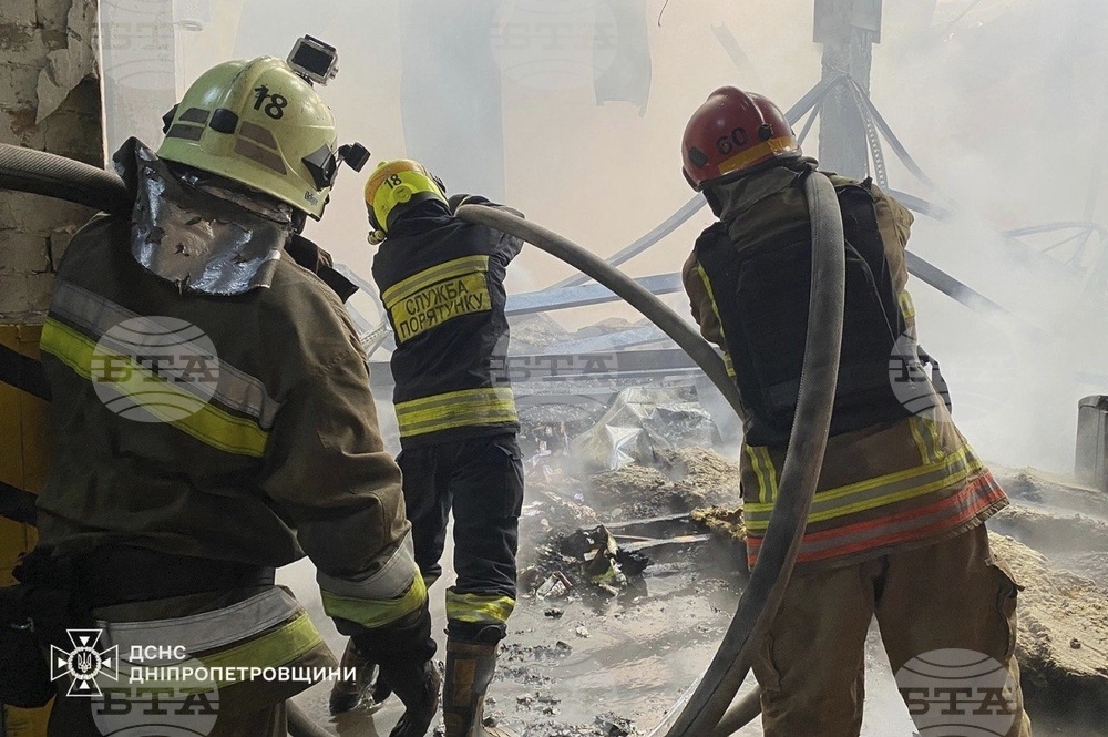 In this photo provided by the Ukrainian Emergency Services on Saturday, Sept. 20, 2025, rescue workers put out a fire of a residential house damaged by a Russian strike on Dnipro, Ukraine. (Ukrainian Emergency Service via AP)