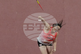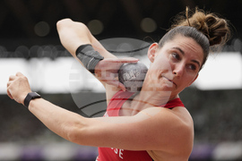 Serbia's Adriana Vilagos makes an attempt in the women's javelin throw qualification at the World Athletics Championships in Tokyo, Friday, Sept. 19, 2025. (AP Photo/Matthias Schrader)