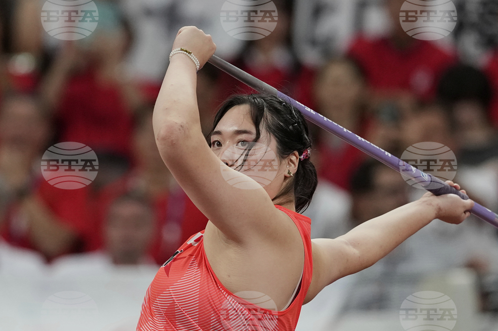 Japan's Haruka Kitaguchi makes an attempt in the women's javelin throw qualification at the World Athletics Championships in Tokyo, Friday, Sept. 19, 2025. (AP Photo/Matthias Schrader)