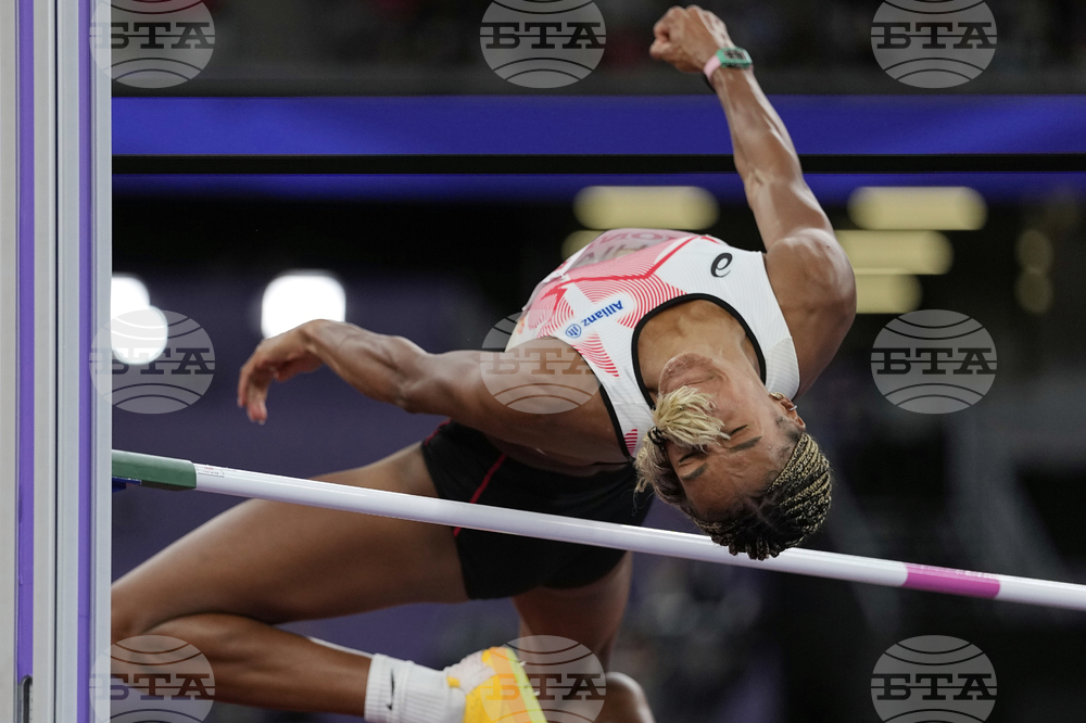 Belgium's Nafissatou Thiam makes an attempt in the heptathlon high jump at the World Athletics Championships in Tokyo, Friday, Sept. 19, 2025. (AP Photo/Matthias Schrader)