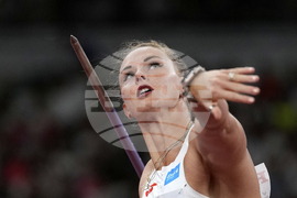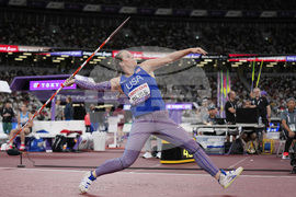 Serbia's Adriana Vilagos competes during the women's javelin throw qualification at the World Athletics Championships in Tokyo, Friday, Sept. 19, 2025. (AP Photo/Bernat Armangue)