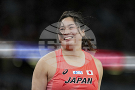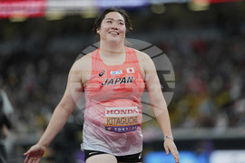 Japan's Haruka Kitaguchi reacts in the women's javelin throw qualification at the World Athletics Championships in Tokyo, Friday, Sept. 19, 2025. (AP Photo/Ashley Landis)