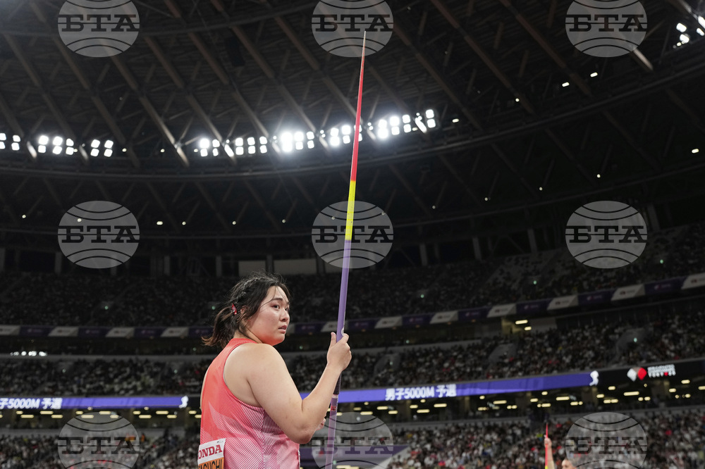Japan's Haruka Kitaguchi prepares to compete in the women's javelin throw qualification at the World Athletics Championships in Tokyo, Friday, Sept. 19, 2025. (AP Photo/Ashley Landis)