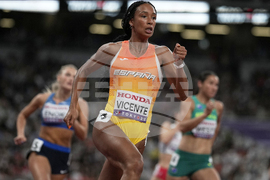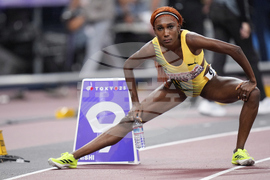 Jamaica's Natoya Goule-Toppin prepares to compete in women's 800 meters semifinal at the World Athletics Championships in Tokyo, Friday, Sept. 19, 2025. (AP Photo/Eugene Hoshiko)