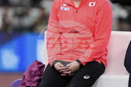 Japan's Haruka Kitaguchi's coach David Sekerak reacts during the women's javelin throw qualification at the World Athletics Championships in Tokyo, Friday, Sept. 19, 2025. (AP Photo/Ashley Landis)