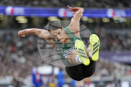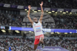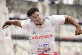 France's Makenson Gletty competes in the decathlon shot put at the World Athletics Championships in Tokyo, Saturday, Sept. 20, 2025. (AP Photo/Ashley Landis)