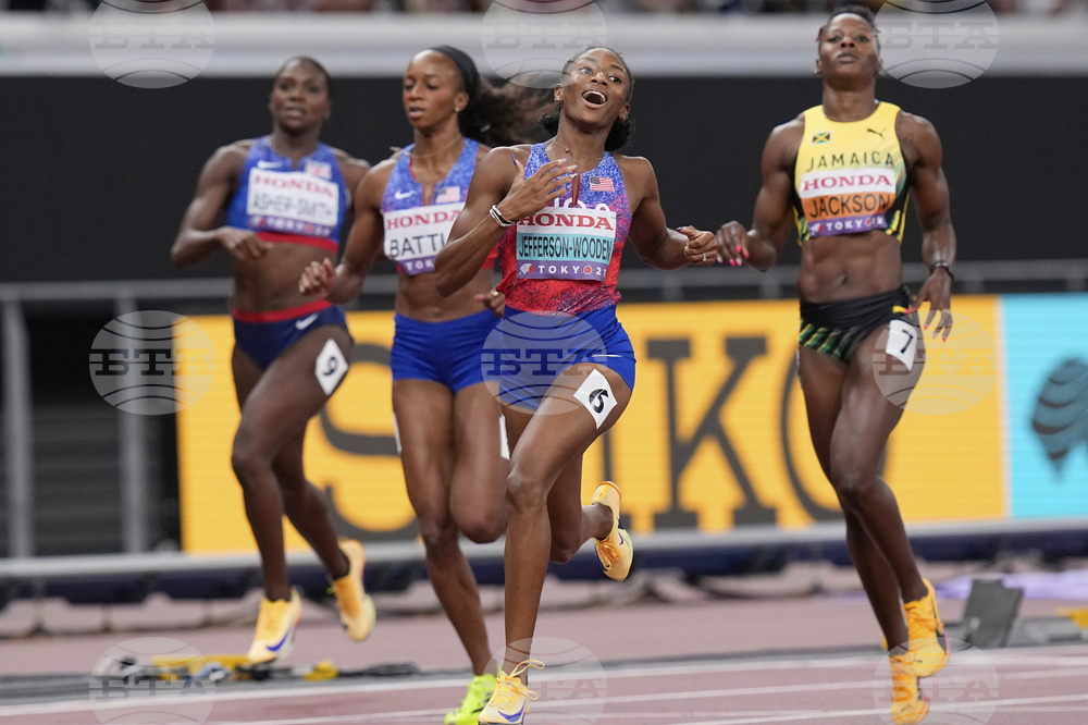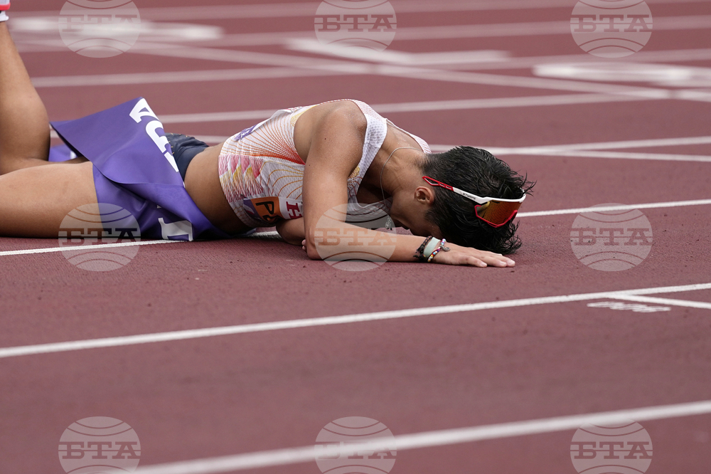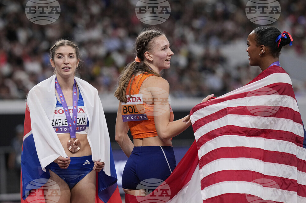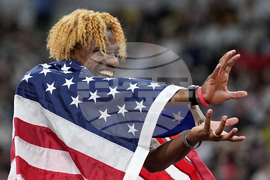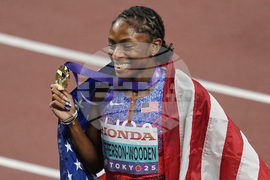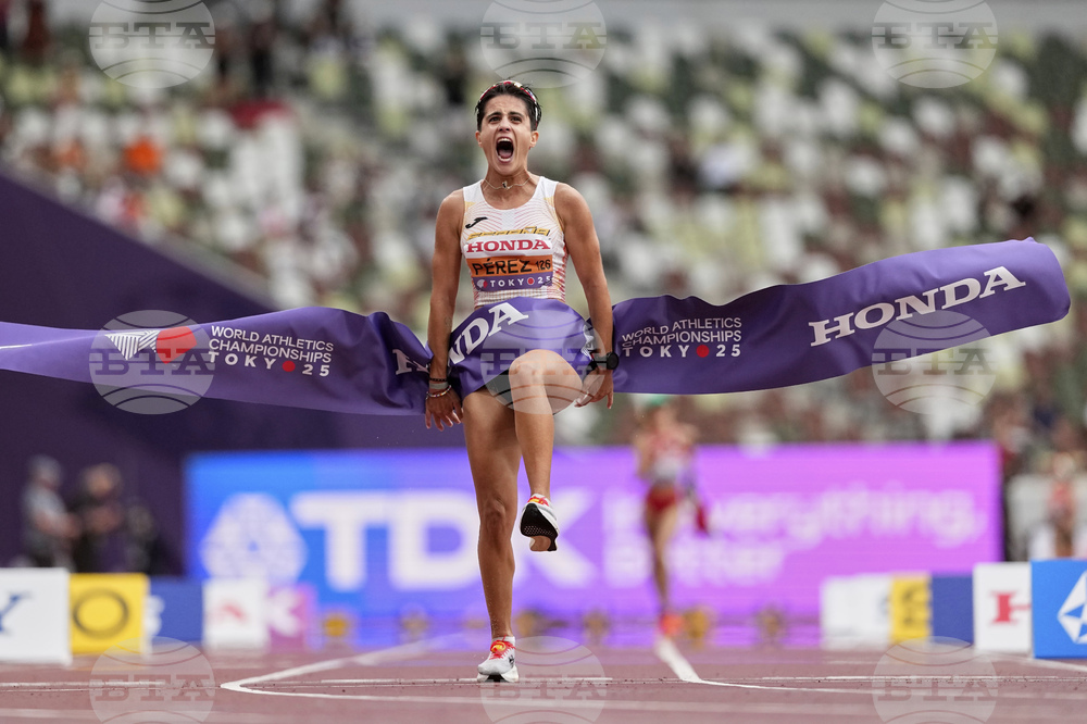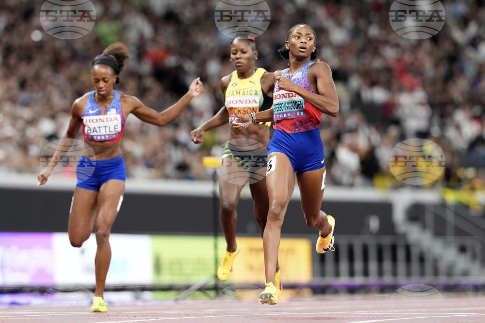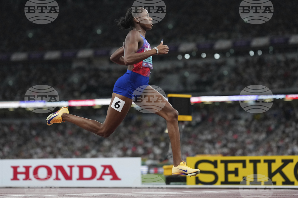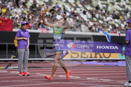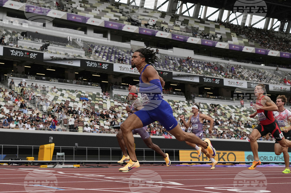at the World Athletics Championships in Tokyo, Saturday, Sept. 20, 2025. (AP Photo/Ashley Landis)