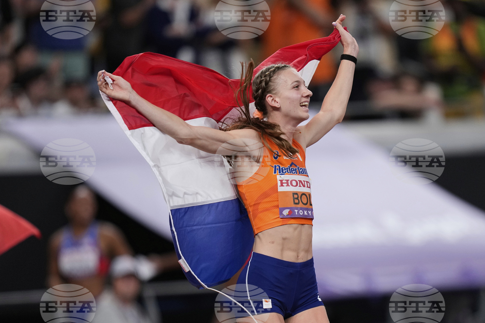 Netherlands' Sofie Dokter competes in the heptathlon high jump at the World Athletics Championships in Tokyo, Friday, Sept. 19, 2025. (AP Photo/David J. Phillip)