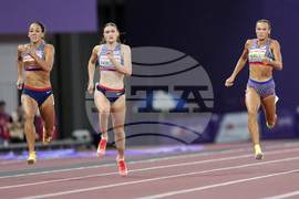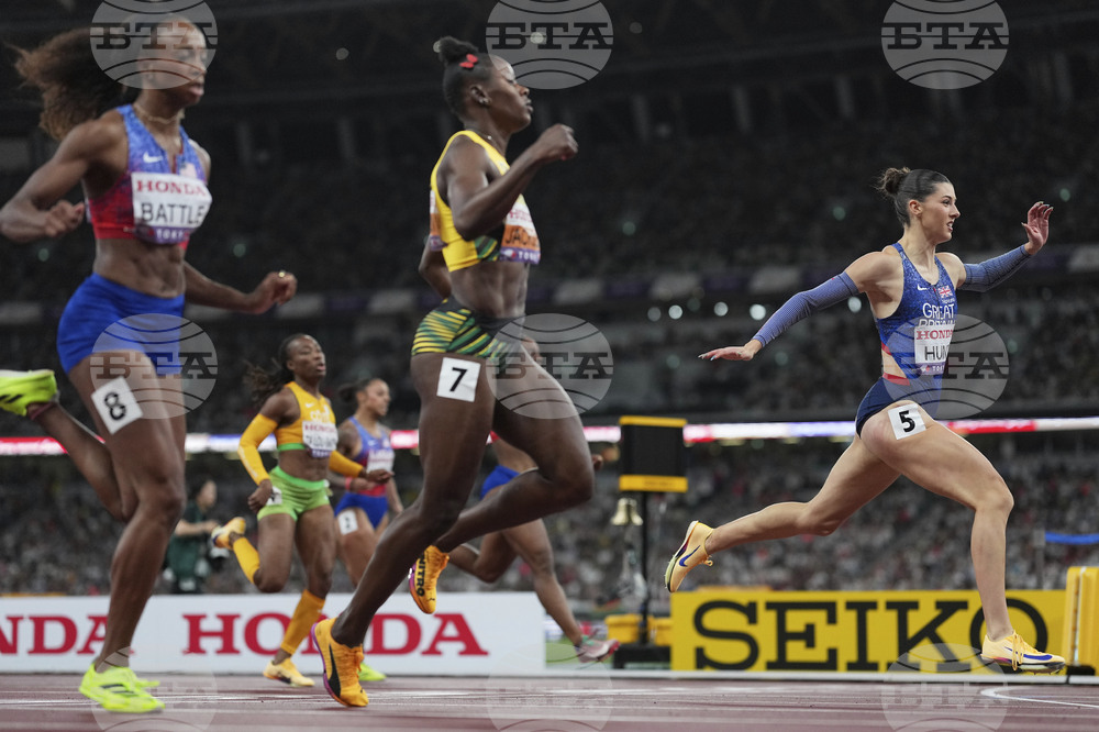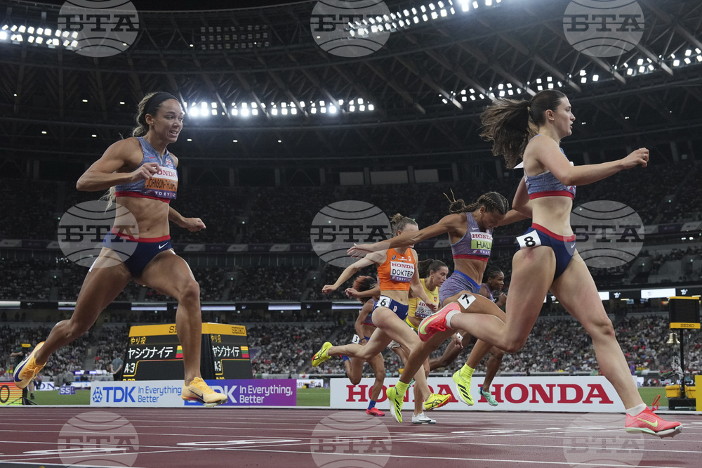 Britain's Georgia Hunter Bell starts a women's 800 meters semifinal at the World Athletics Championships in Tokyo, Friday, Sept. 19, 2025. (AP Photo/Petr David Josek)