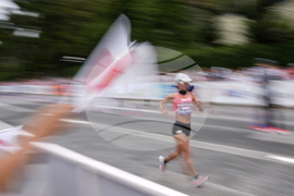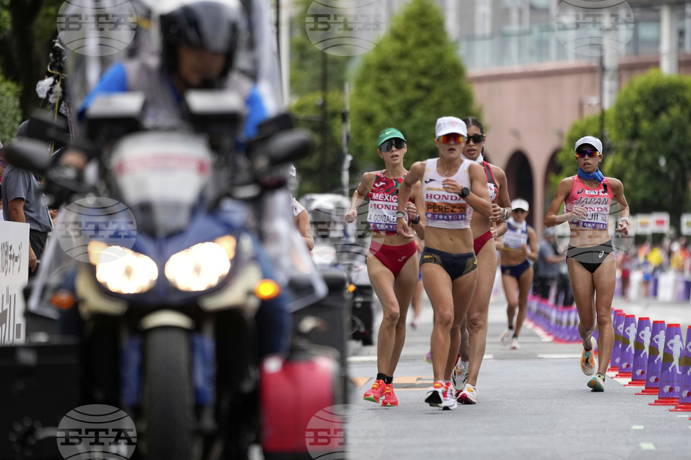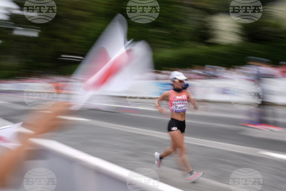 Brazil's Caio Bonfim on his way to winning the men's 20 kilometers race walk at the World Athletics Championships in Tokyo, Saturday, Sept. 20, 2025. (AP Photo/Ashley Landis)