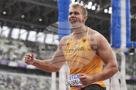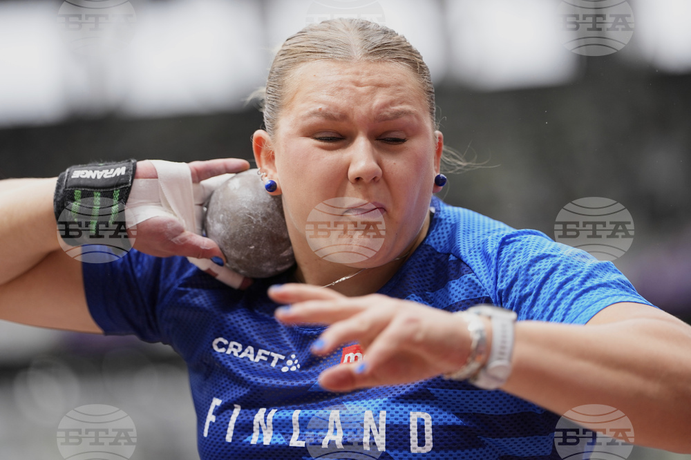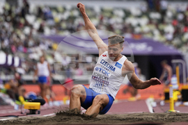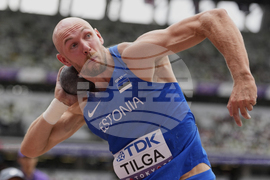 Estonia's Karel Tilga competes in the decathlon shot put at the World Athletics Championships in Tokyo, Saturday, Sept. 20, 2025. (AP Photo/Ashley Landis)